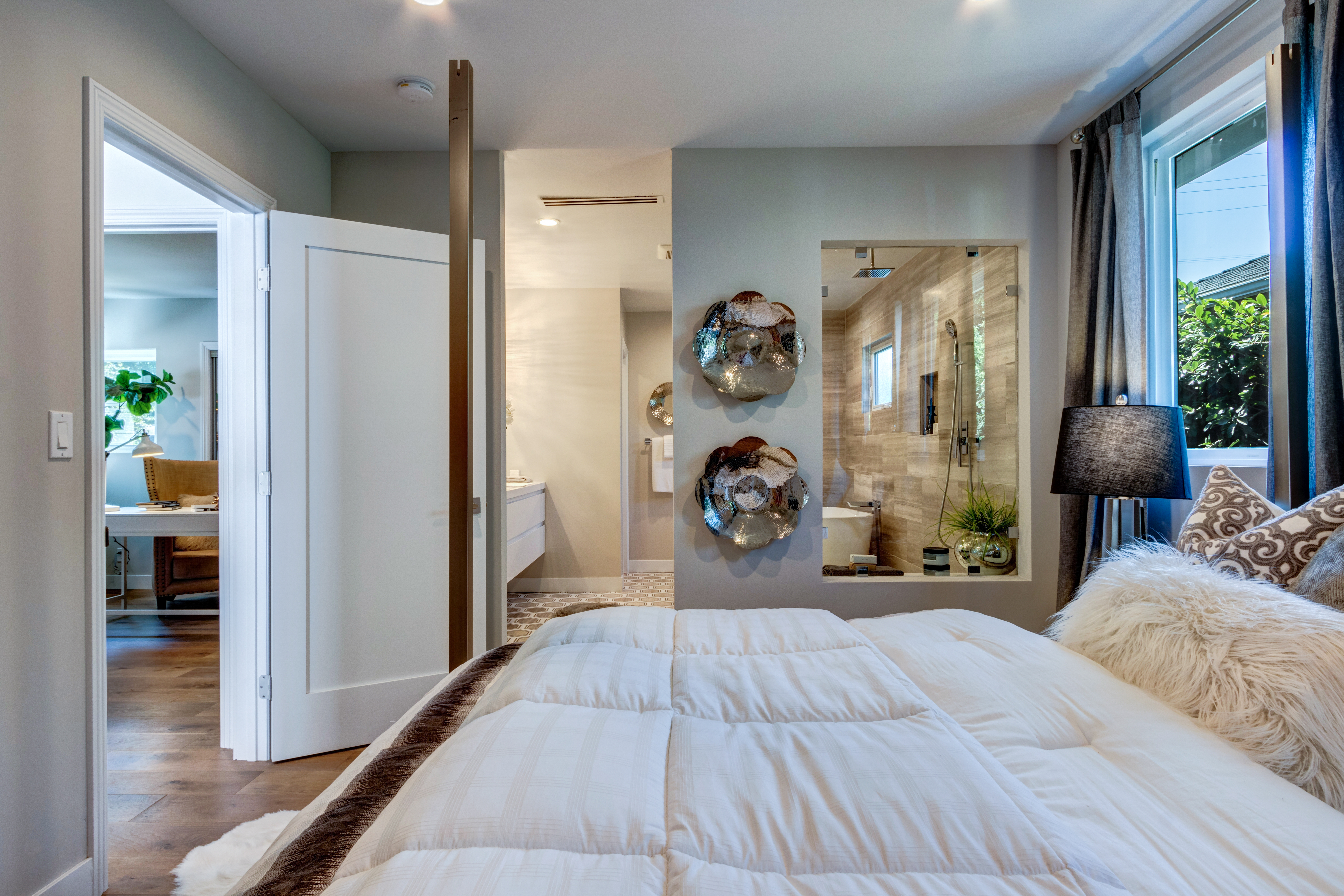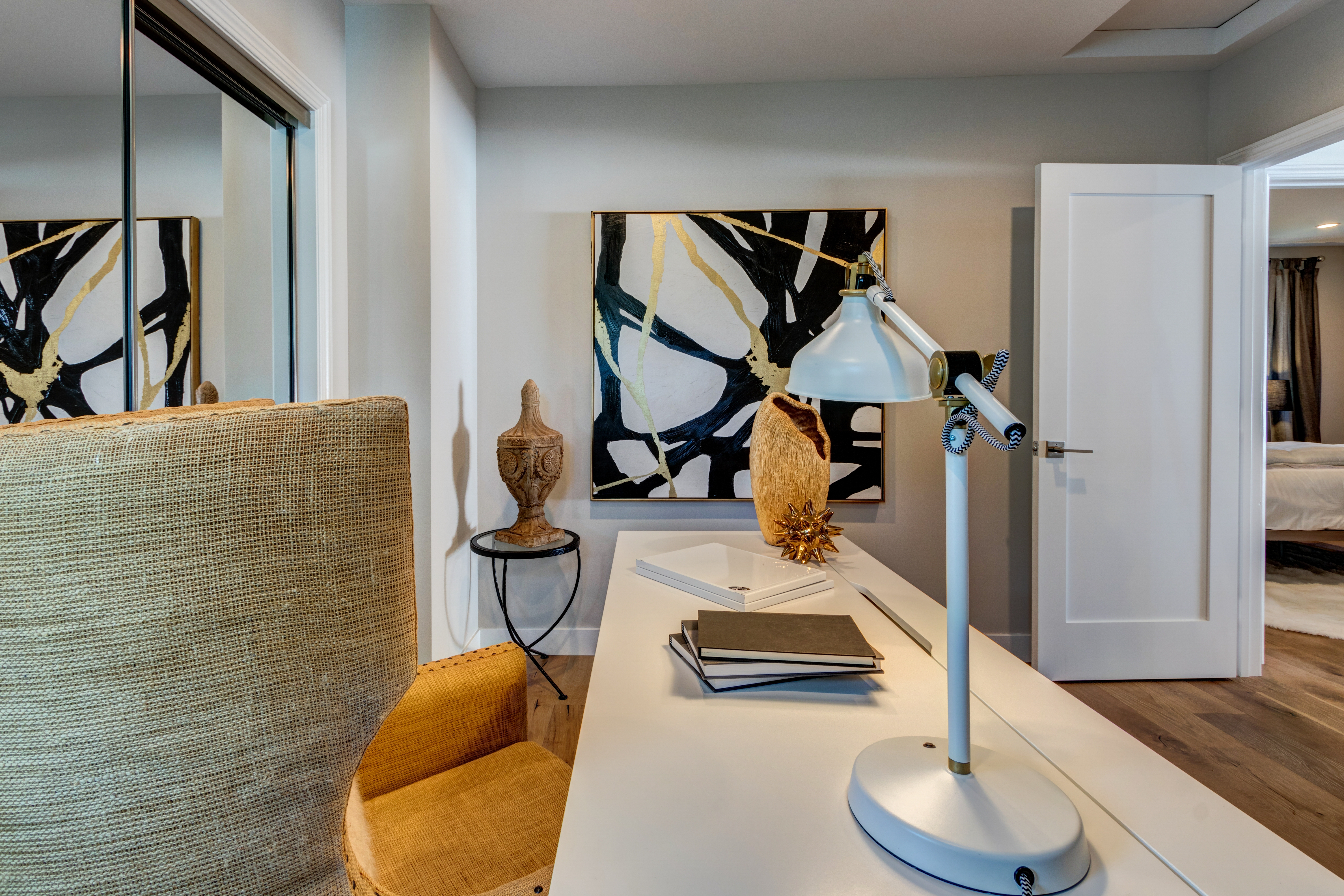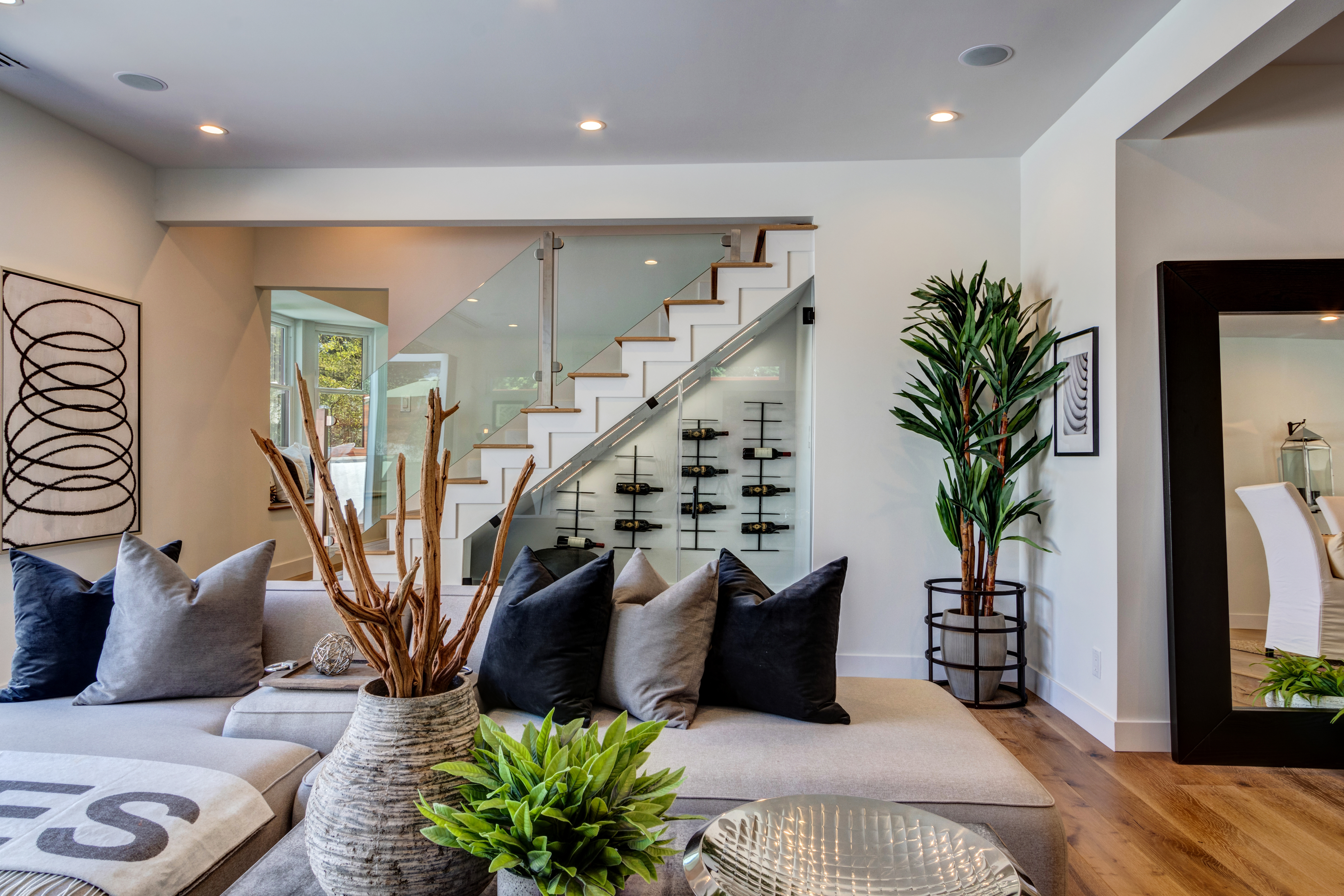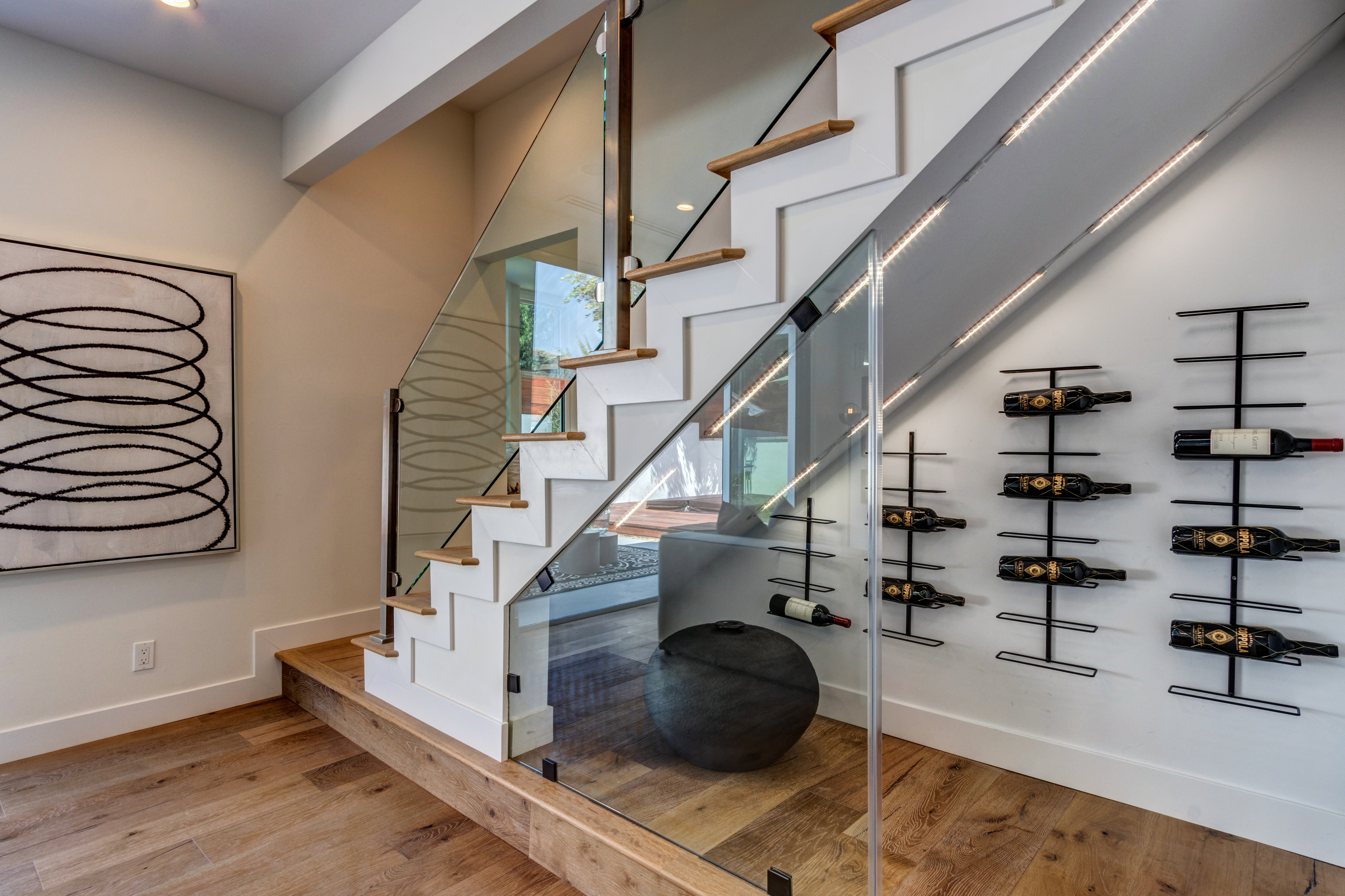 Engineered plank wood floors give the home warmth with a beautifully appointed kitchen and shaker cabinetry, generous sized island, Calcutta quartz counter tops with waterfall detail. A unique use for under the stairs features your custom glass wine storage. The romantic master suite is a personal oasis of luxury with European floating vanity, Italian marble floors, seamless glass shower, soaking tub and a heated towel bar.